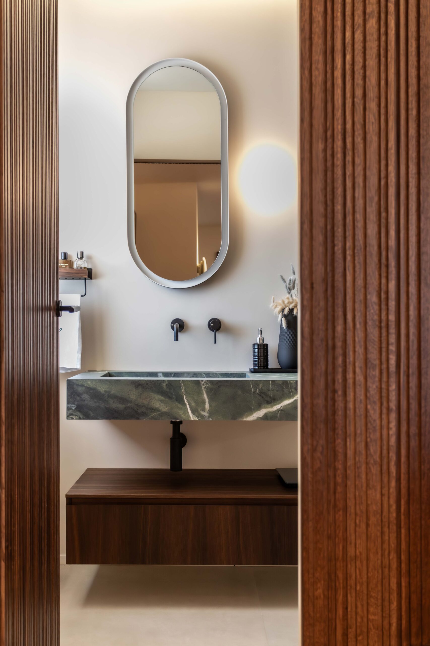 Il risultato è una casa equilibrata e luminosa, in cui ogni materiale contribuisce a creare un racconto coerente di benessere, design e bellezza.